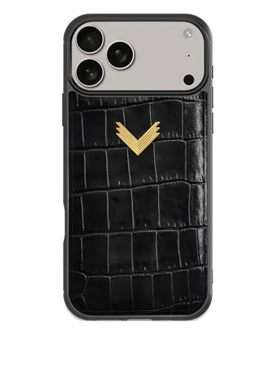 Crocodile-texture Iphone 17 Pro Max Phone Case In Black