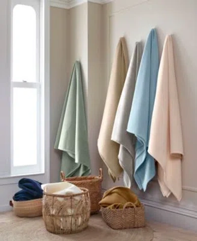 Textured Cotton Throw Blanket In Green
