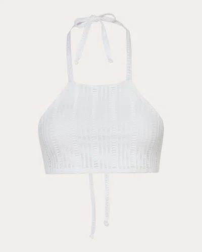 Women's Moa Geometric Mesh Halterneck Bikini Top In White