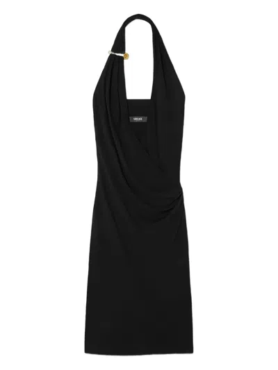 Black Mini Sleeveless Dress With Medusa Detail