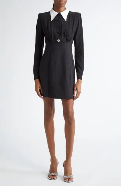 Crepe De Chine Silk Shirtdress With Jewel Button In Black