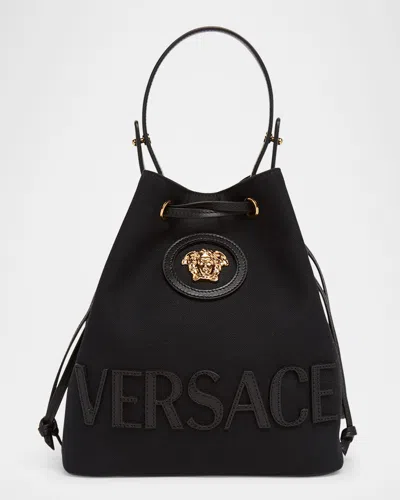 La Medusa Drawstring Canvas Bucket Bag In Black