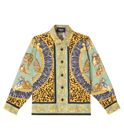 Kids' Barocco-print Cotton Sweatshirt In Black Gold