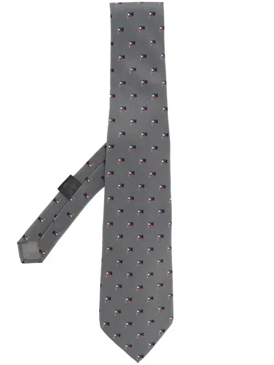 Pre-owned 1970s Flag Print Silk Necktie In Grey
