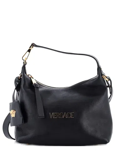 Pre-owned La Medusa Top Handle Bag Leather With Zipper Detail Medium Satchel In Black