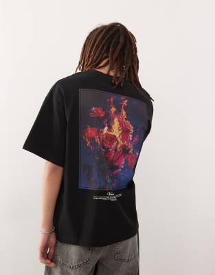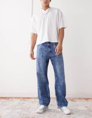 Geo Pattern Detail Baggy Fit Jeans In Blue