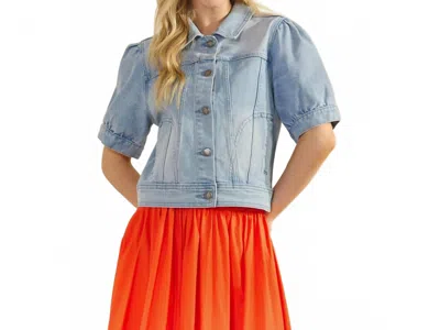 Stripe Rhinestone Distressed Denim Jacket In Light Wash In Blue