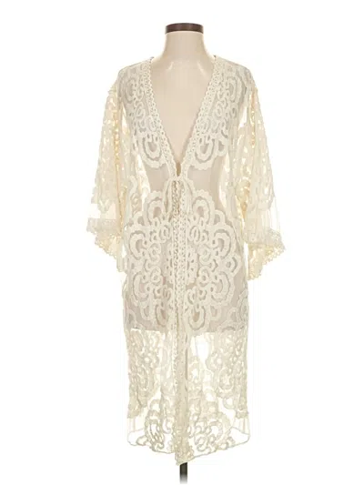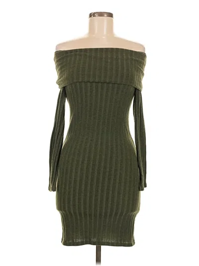 Pre-owned 3/4 Sleeve Top Green Cold Shoulder Neckline Tops