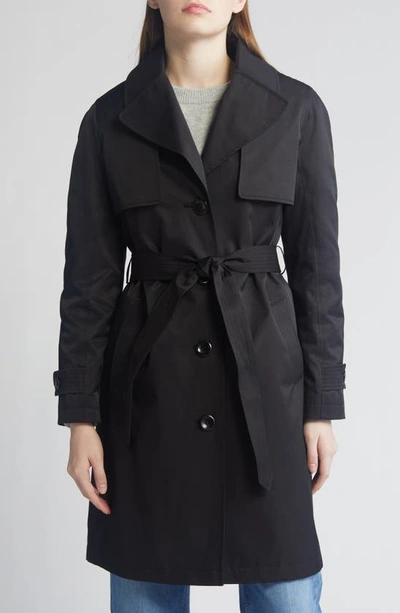 Water Resistant Cotton Blend Trench Coat In Black