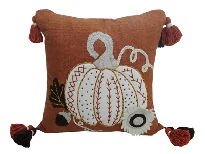 20" X 20" Pumpkin Throw Pillow With Tassels In Brown