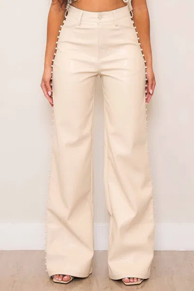 Vegan Leather Wide With Pearl In White In Multi