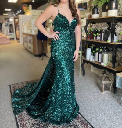 Twinkling Mermaid Beaded Long Prom Dress In Emerald In Green