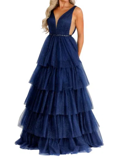 Straight Beaded Belt Prom Gown In Royal In Blue