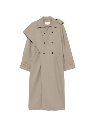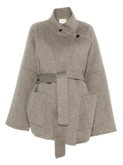 Wool Coat With Asymmetrical Wrap Closure And Matching Belt In Gray