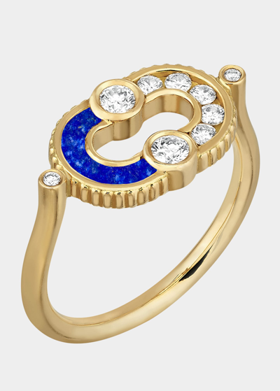 Magnetic Lapis Lazuli Semi Ring In 18k Yellow Gold And Diamonds In Yg