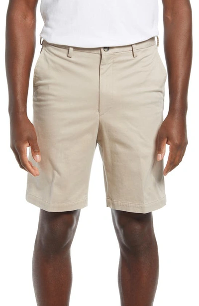 Classic Flat Front Chino Shorts In Stone