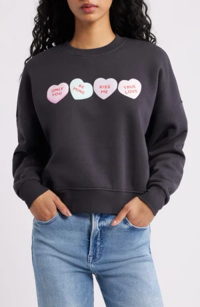 Mini Hearts Fleece Graphic Sweatshirt In Black