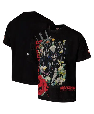 Men's Black Wolverine Dekryptic Wolverine Deadpool Oversized Fit And Heavy Wash T-shirt