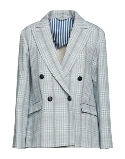 Woman Blazer Light Blue Size 6 Linen, Cotton