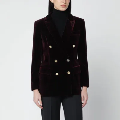 Bordeaux Velvet Double-breasted Jacket In Burgundy