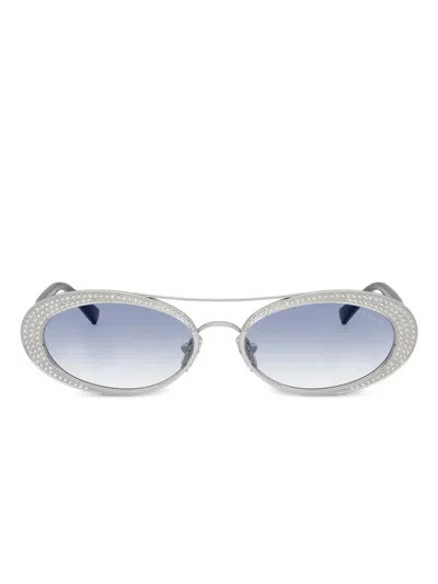 Embellished Oval-frame Sunglasses In Gold