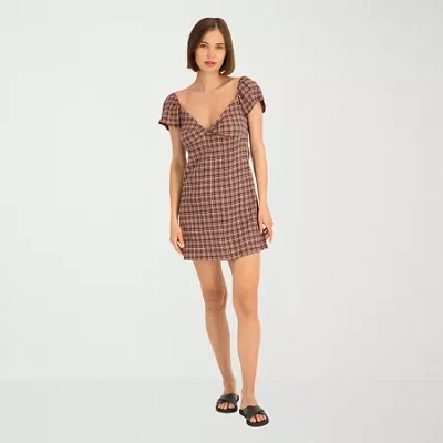 Womens Juniors Short Sleeve Sundress In Brown