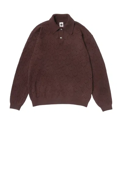 Eyelet Polo Sweater In Brown