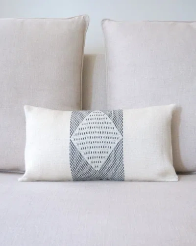 Diamante Lumbar Pillow With Border In Ivory/charcoal