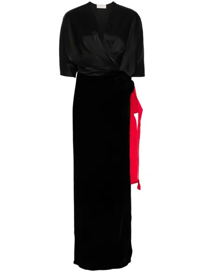 Aria Two-tone Crepe Maxi Dress In Black