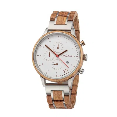 White / Brown / Silver Chronograph Barista Bianco Watch With Wooden Strap Men