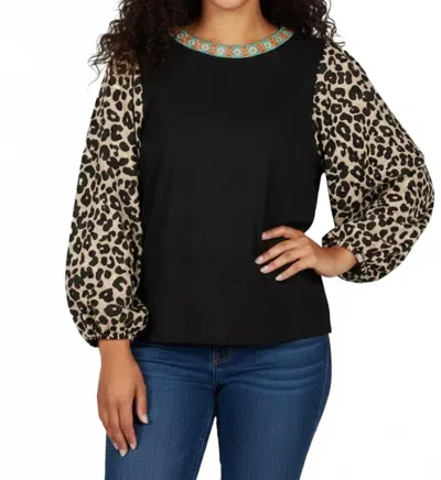 Tayler Long Sleeve Top In Leopard In Black