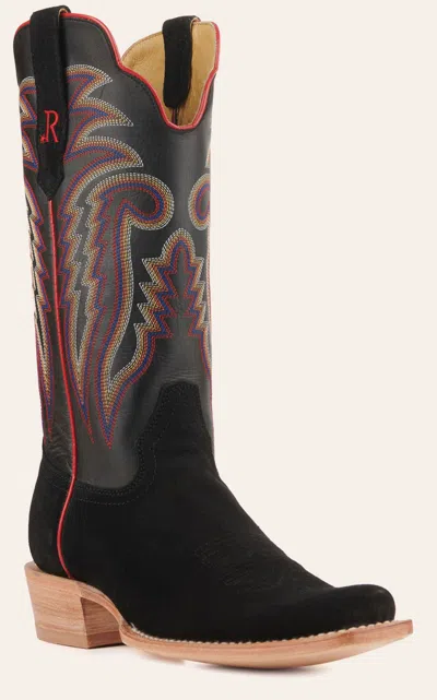 R Men's Black Rough Out And Black Punchy Square Toe Cowboy Boots In Multi