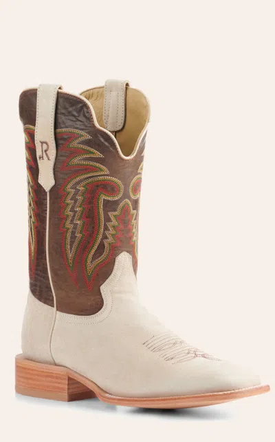 R. Men's Bone Boar And Honey Brown Wide Square Toe Cowboy Boots In White