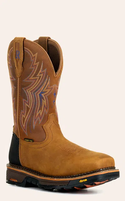 R. Men's Tan And Bay Brown Waterproof Wide Square Composite Toe Cowboy Work Boot
