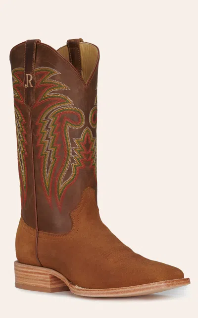 R Men's Tan Roughout And Arizona Tan Wide Square Toe Cowboy Boots In Brown