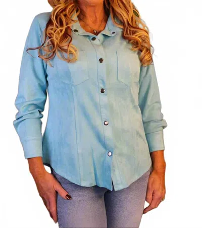 Sarah Jessica Minky Fur Jacket In Turquoise In Blue