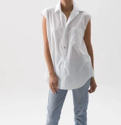 Cut Off Button Down Top In Optic White