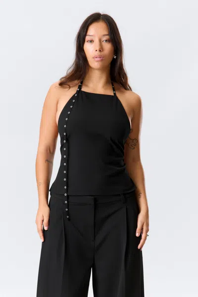 Backless Halterneck Top With Eyelet Strap Detail In Black