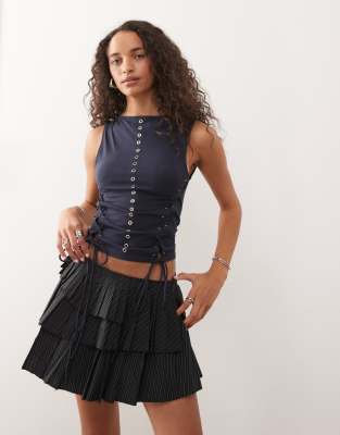 Sleeveless Grommets Top With Tie Up Sides In Blue