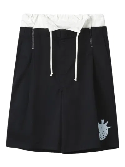 Drawstring Strawberry Print Shorts In Black