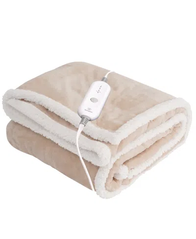 Heated Flannel And Sherpa Throw, 50" X 60" In Beige
