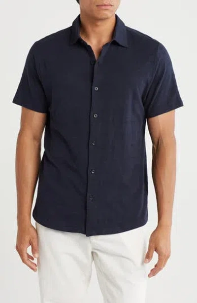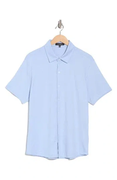 Forli Short Sleeve Cotton Knit Button-up Shirt In Blue
