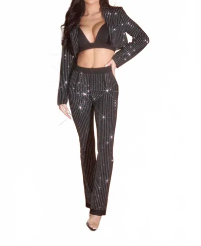 Boss Rhinestone Pinstripe Pants In Black In Multi