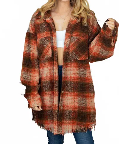 Plaid Fray Shacket In Brown/multi