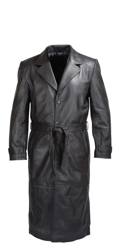 Pre-owned Mens Black Lambskin Classic Leather Trench Coat Mlc1