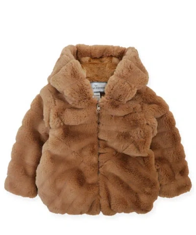 Kids' Faux Fur Hooded Zip Cozy Jacket In Brown