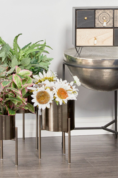 Goldtone Metal Contemporary Planter With Elevated Caged Stand