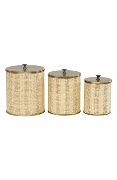 Set Of 3 Textured Metal Lantern Candle Holders In Bronze