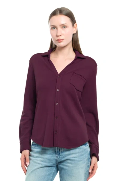 Button Front Sweatshirt In Purple