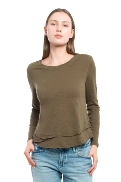 Long Sleeve Mock Layer Tee In Green